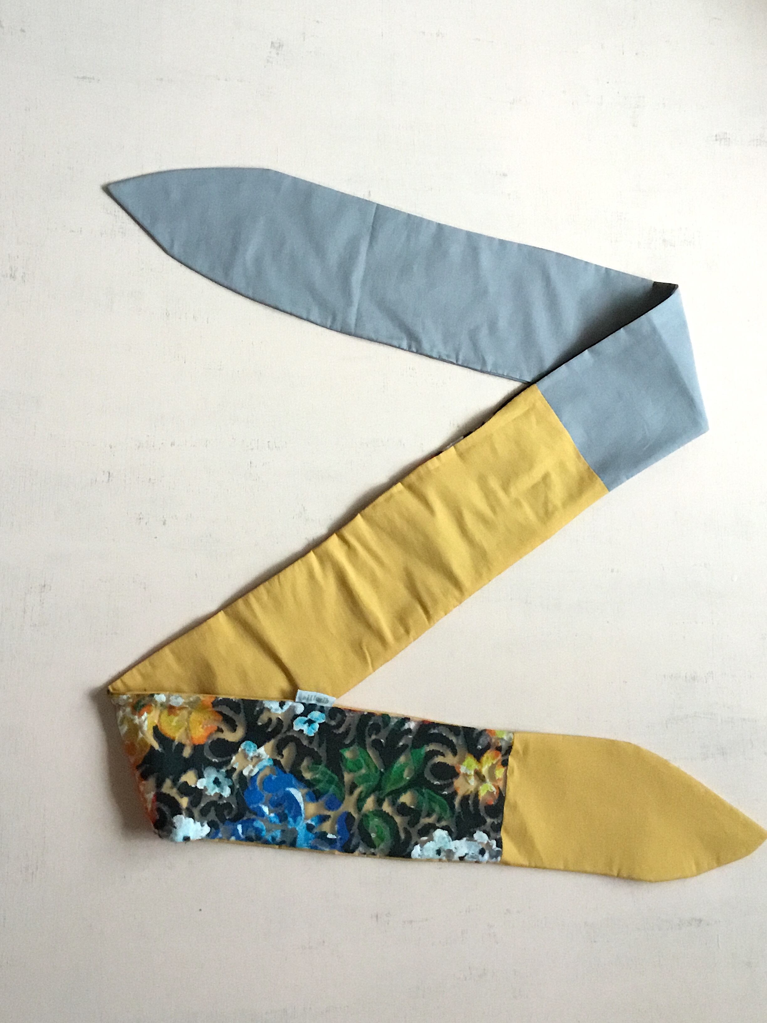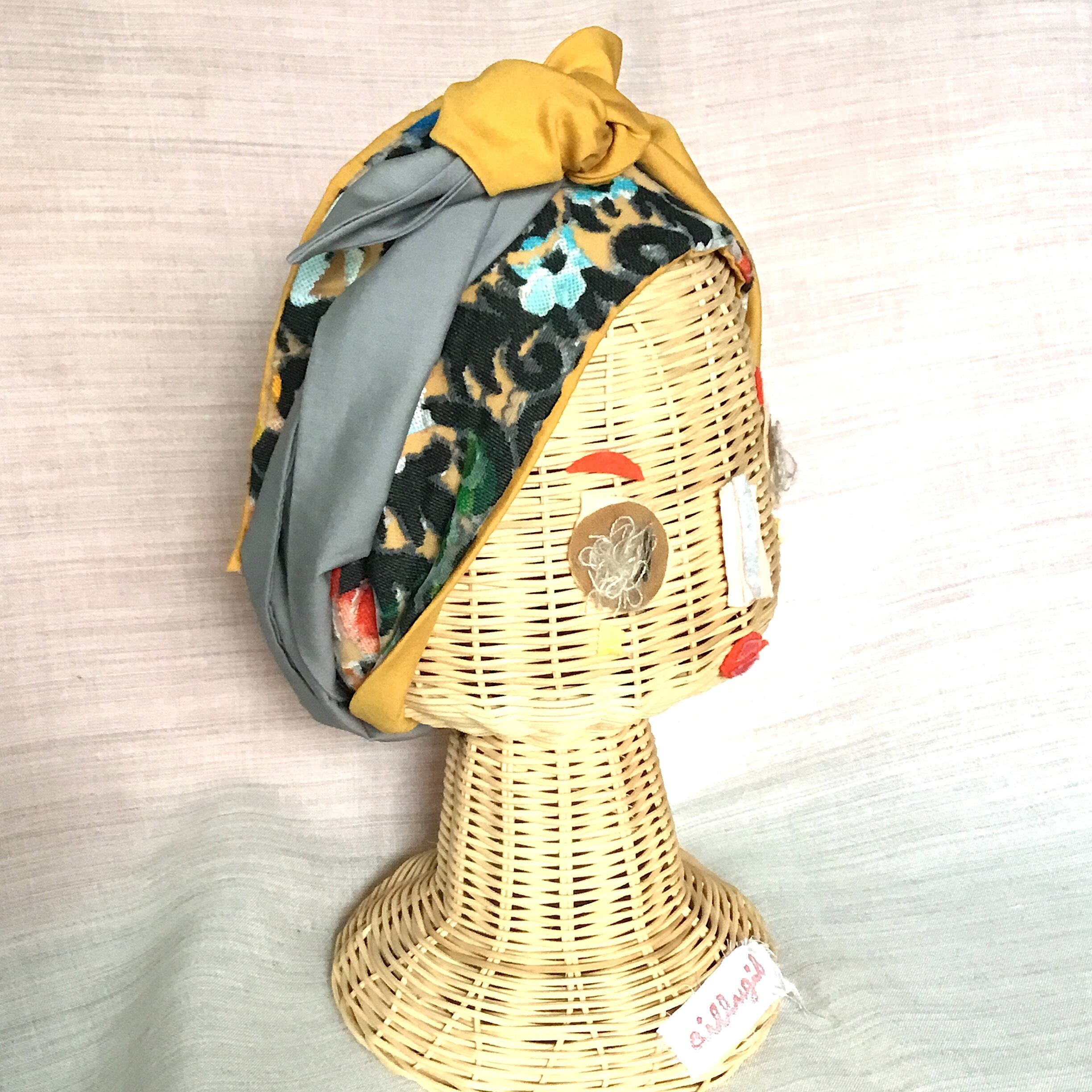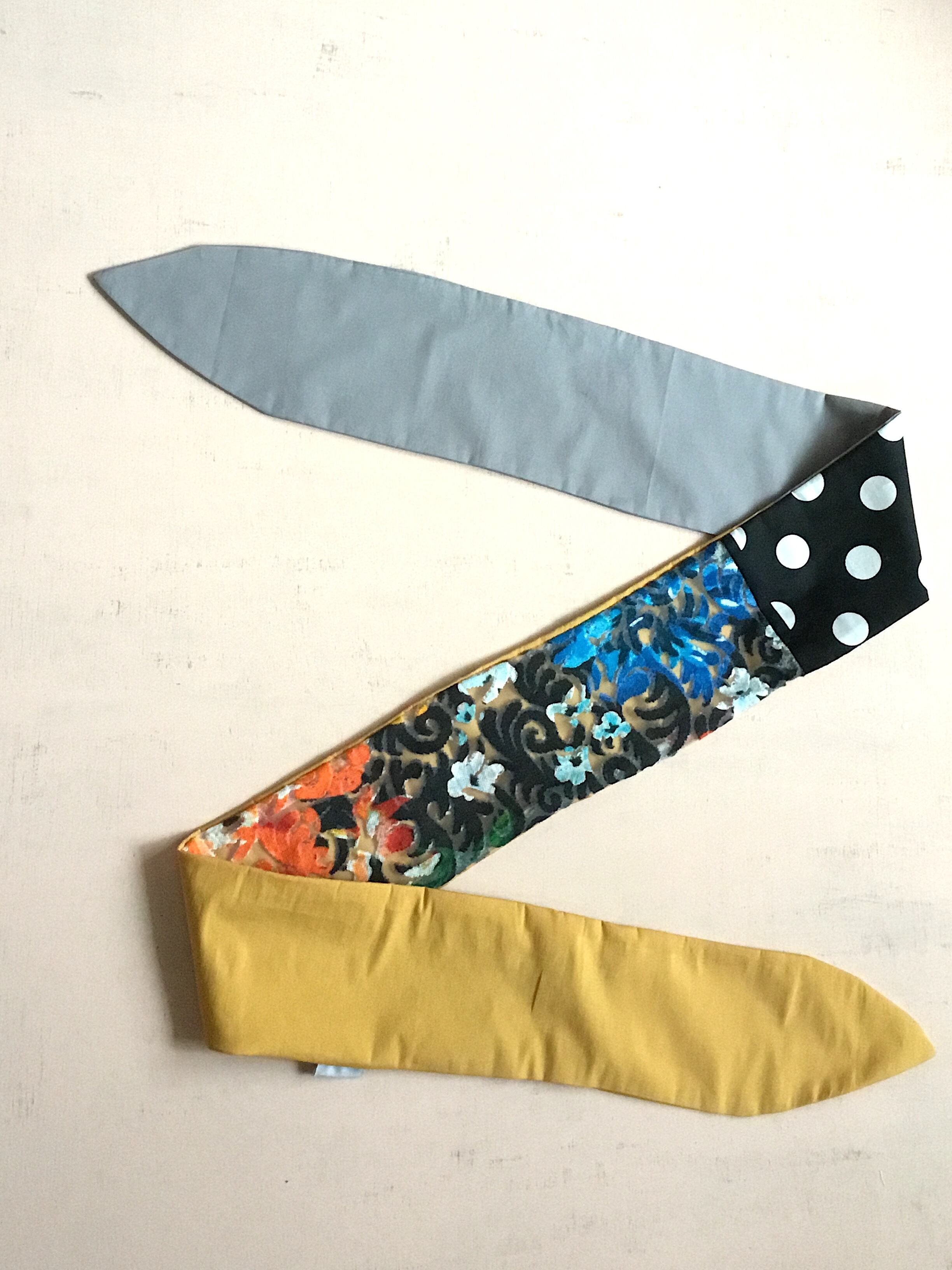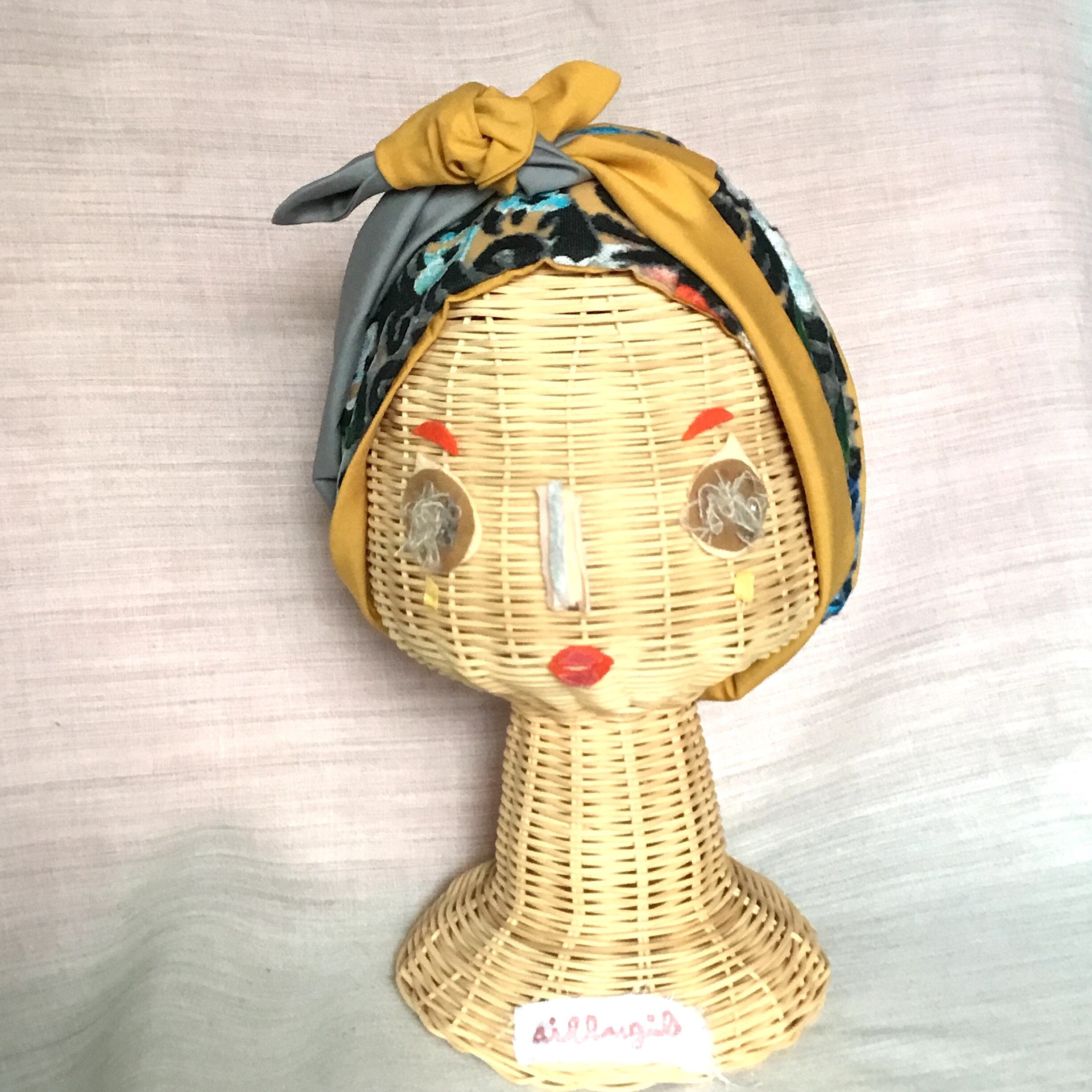 aillugib(アイルギブ)ヘアターバン。海外で入手した布を中心に、様々な布を組み合わせてつくります。同じ布の組み合わせは全くない、世界にひとつだけの手作りヘアターバンです。