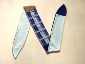 ・柄といい素材といいなかなかお目にかかれない不思議なチェック柄。この布をメインに、ブルーグレーと、落ち着いた美しいブルーを合わせました。また、キャメル色の布は、角度によってオーロラ色に光る、不思議な印象の布です。