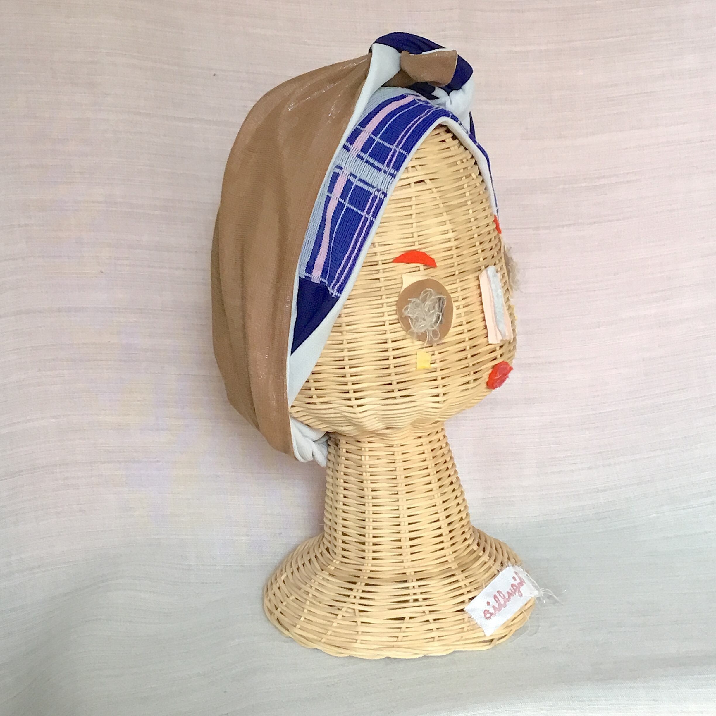aillugib(アイルギブ)ヘアターバン。海外で入手した布を中心に、様々な布を組み合わせてつくります。同じ布の組み合わせは全くない、世界にひとつだけの手作りヘアターバンです。