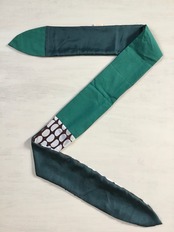 ・「森と語らう」・・・コットンのグリーンは清々しさ、青みがかったシャイニーなグリーンは深い安らぎ。トーンの異なる2種の緑色に、月の満ち欠けのような不思議な柄のレーヨン素材の布をプラスしました。